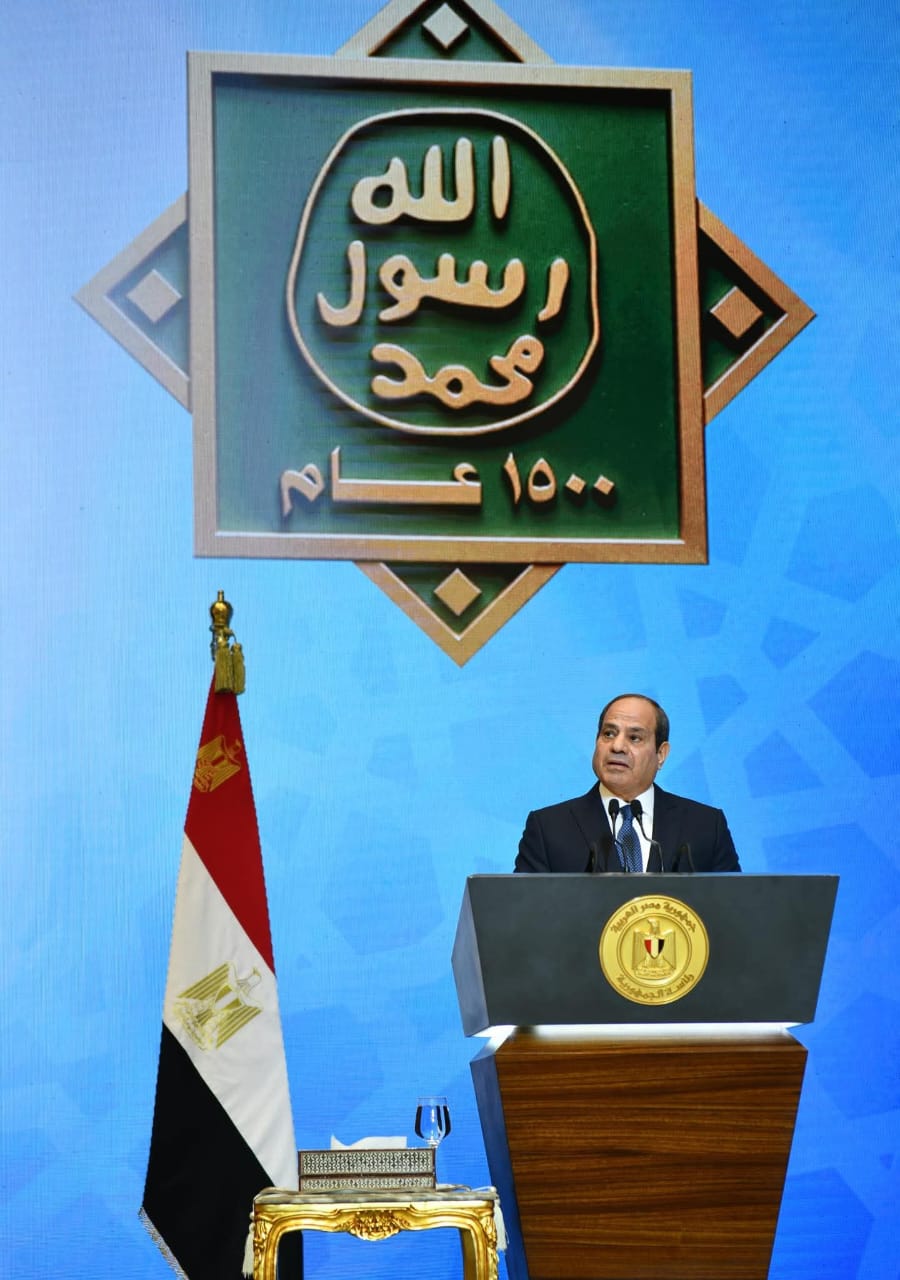 الرئيس عبد الفتاح السيسي شهد احتفالية الأوقاف بالمولد النبوي الشريف على المسرح الكبير في مركز المنارة