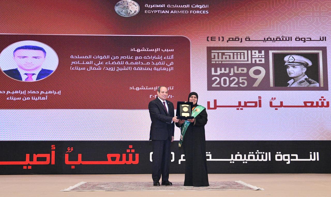 شهد السيد الرئيس عبد الفتاح السيسي رئيس الجمهورية القائد الأعلى للقوات المسلحة وقائع الندوة التثقيفية 41 احتفالاً بيوم الشهيد وقدامى المحاربين،والذي أقيم على المسرح الرئيسي بمركز المنارة للمؤتمرات الدولية بحضور رئيس مجلس الوزراء الدكتور مصطفى مدبولي ووزير الدفاع والإنتاج الحربي القائد العام للقوات المسلحة الفريق أول عبد المجيد صقر ورئيس أركان حرب القوات المسلحة الفريق أحمد خليفة والوزراء وقادة الأفرع الرئيسية للقوات المسلحة وكبار القادة تحت شعار شعب أصيل. إلى ذلك،بدأت فعاليات الاحتفال بسلام الشهيد فيما تابع السيد الرئيس عبد الفتاح السيسي والحضور تسجيلات وثائقية تجسد بالكلمة والصورة والمعنى الأعمال الخالدة التي قدمها أبطال مصر ورجالها البواسل دفاعاً عن أمن الوطن واستقراره وصوناً لمقدراته ومكتسباته في جميع المواقف ومختلف الظروف على مر العصور،كما قدم نخبة متميزة من ألمع نجوم الفن في مصر ومجاميع الشباب والبراعم الناشئة فواصل فنية وغنائية بالإضافة إلى بعض الوثائقيات عن الجنرال الذهبي الفريق أول الشهيد عبد المنعم رياض أحد أهم رموز العسكرية المصرية والعربية والذي تواكب هذه المناسبة الخالدة ذكرى استشهاده يوم 9 مارس عام 1969 على الخطوط الأمامية لجبهات القتال. على ذات الصلة،قام الرئيس السيسي بتكريم ذوي شهداء العمليات العسكرية وأسرهم تقديراً من الوطن والقوات المسلحة لما قدموه من تضحيات ستظل أثارها باقية في ذاكرة مصر عبر الأجيال،مؤكداً سيادته في كلمته خلال الحفل على ان شهداء مصر الأبرار لم يقدموا أرواحهم فحسب بل قدموا المستقبل لمصر ومهدوا لنا طريق الاستقرار والأمان الذي نواصل فيه اليوم مسيرة البناء والتنمية،موجهاً التحية للشعب المصري والقوات المسلحة على ما بُذل من جهود خلال السنوات الماضية لبناء قدرات هذه الأمة عسكرياً وسياسياً واقتصادياً والوقوف على قدمين ثابتتين للدفاع عن حاضرنا وتأمين مستقبل الأجيال القادمة.الرئيس السيسي افتتح أعمال الدورة الثامنة من مؤتمر ومعرض مصر الدولي للطاقة إيجيبس 2025